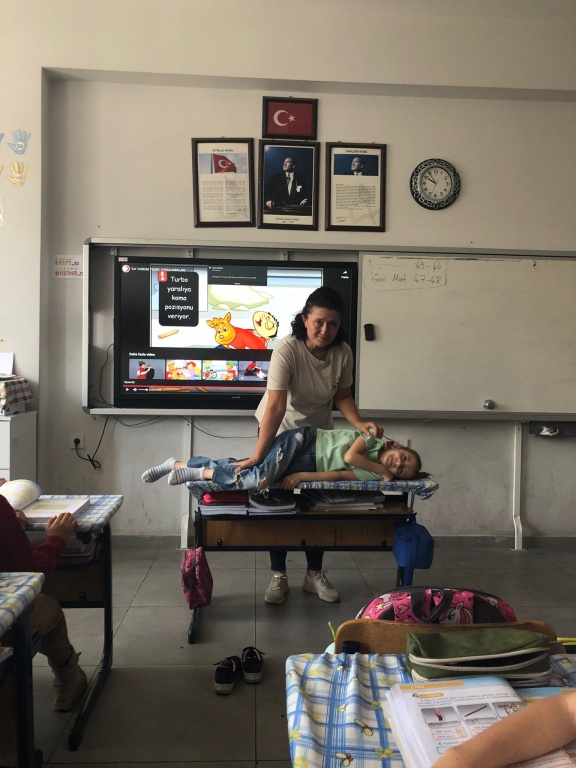 Cumhuriyet İlkokulu öğretmenleri ve öğrencileri “ Dünya İlk Yardım Günü” etkinlikleri kapsamında koruyucu, önleyici ,acil müdahale gerektiren kazalar ve hastalık durumunda tıbbi yardım gelinceye kadar yapılabilecek ilk yardım uygulamaları hakkında farkındalık ve duyarlılık oluşturmak için ilk yardım animasyonları ile etkinlikler yaptı.